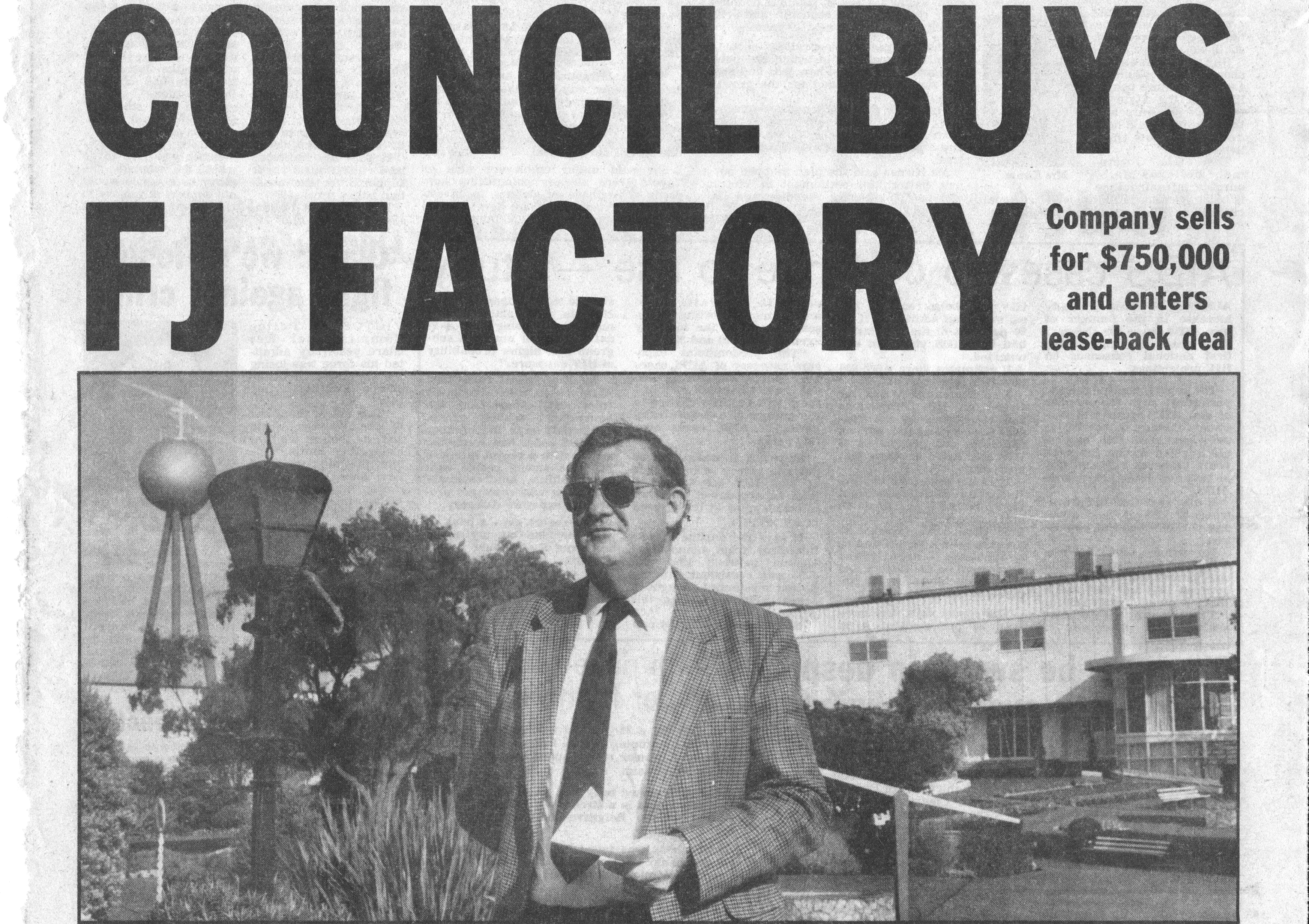 At their April Council meeting in 1992, Warrnambool City Council agreed to buy the Pleasant Hill site for $750,000 and lease it back to FJs in a bid to secure the long term future of the company in the city. The lease agreement was for an initial three-year period involving a 9% annual return to the council or $67,500 and with an option for further leases.