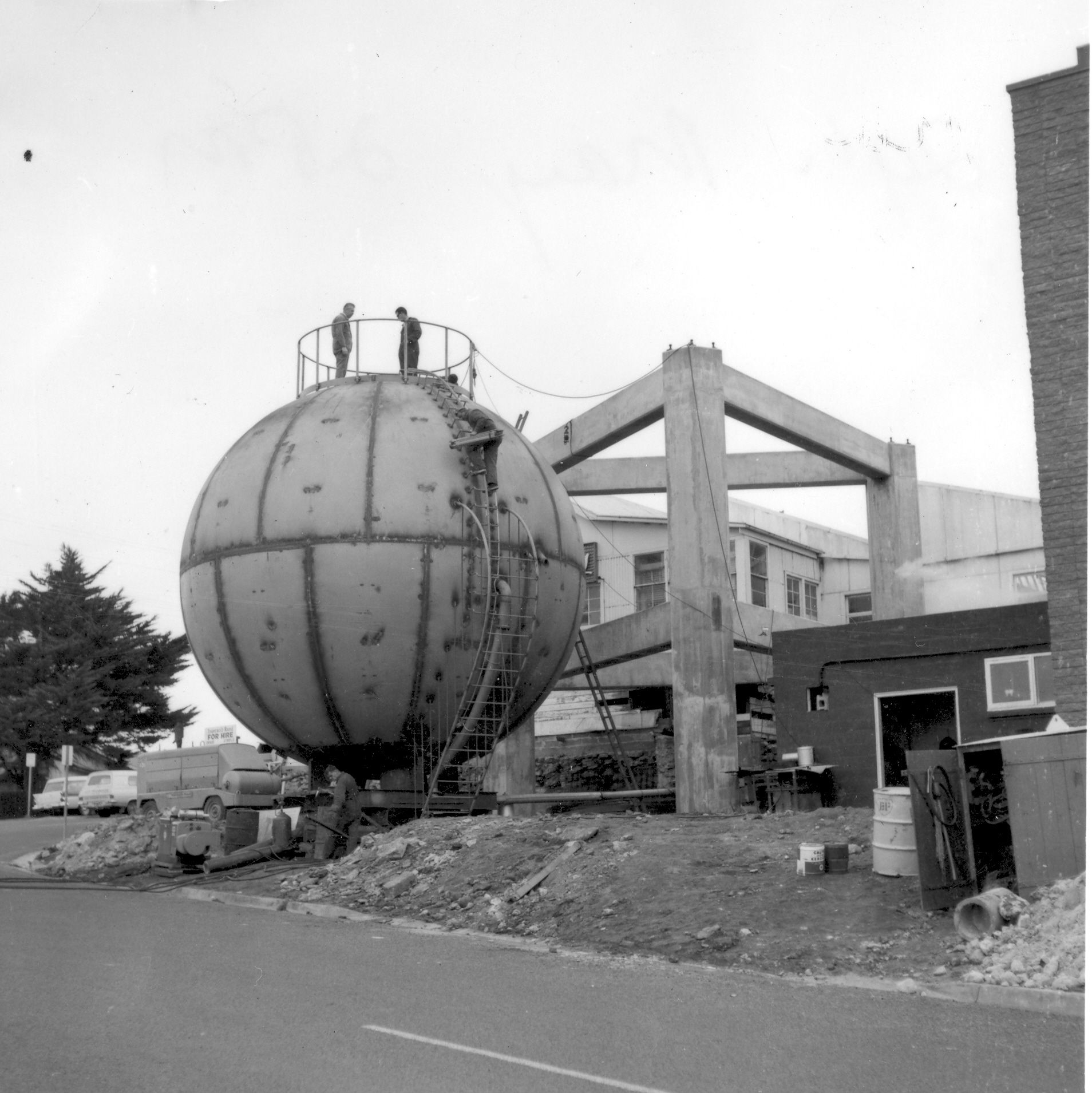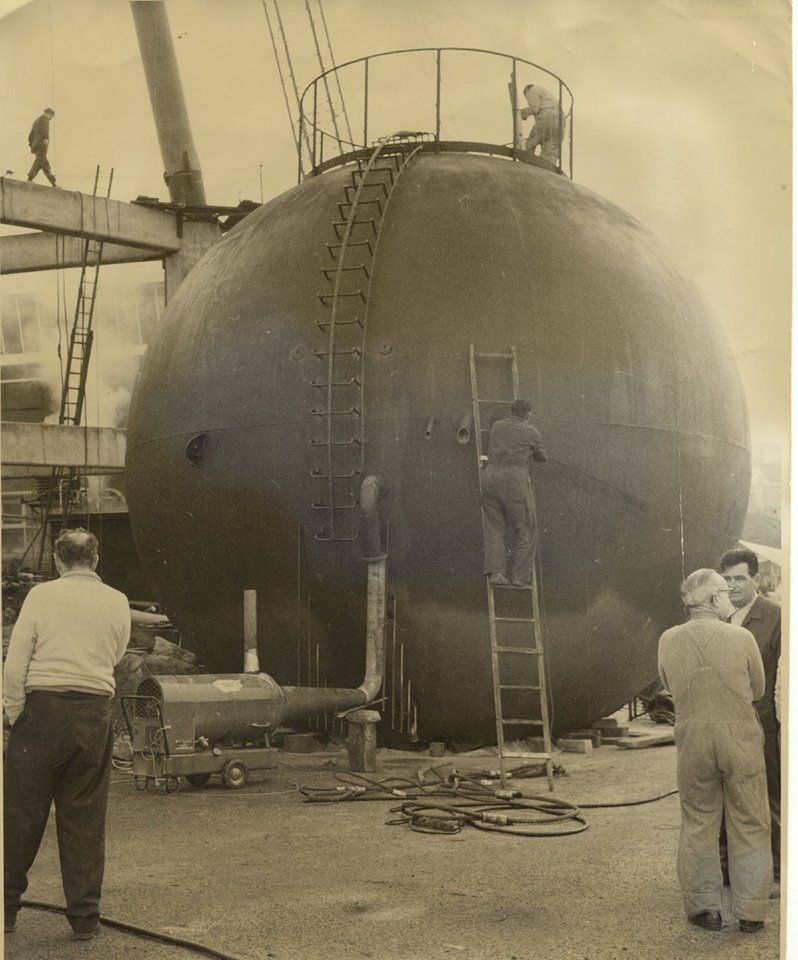 We always wondered did the ball arrive on site already a ball? These photos show it arrived in sections in April 1967 and was welded together on site over the next couple of months.
