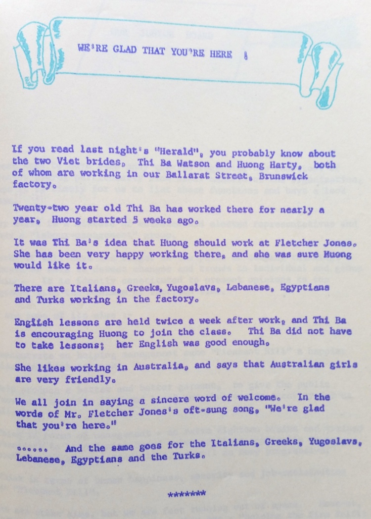 "There were many noticeboards throughout the Pleasant Hill factory with the 'Do You Knows' and we really looked forward to reading them each day. They were sent daily, either by mail or on our truck, to the Melbourne stores and factories. Eric Tonkin wrote lots of them but he was only one of the authors. Sir Fletcher, shop managers, management, FJ individuals and even outsiders could all contribute. Vera French was the main typist but I don't know who did the sketches that appeared on many of the Do You Knows. The canteen chef always advertised the daily menu in the bottom part of the Do You Know noticeboard." Tim Carlton