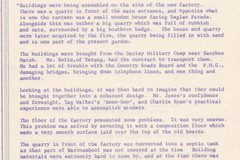 "A large section of the Warrnambool factory for example, houses a computer system where skilled operators plan cutting patterns that guide the automated cutters with speed, precision and minimal waste. Systems engineering in the tailoring section means that one operator can comfortably control several machines simultaneously. Individually tailored men's suits are cut by a computer-controlled laser beam, which ensures accuracy and reduced cutting time.
