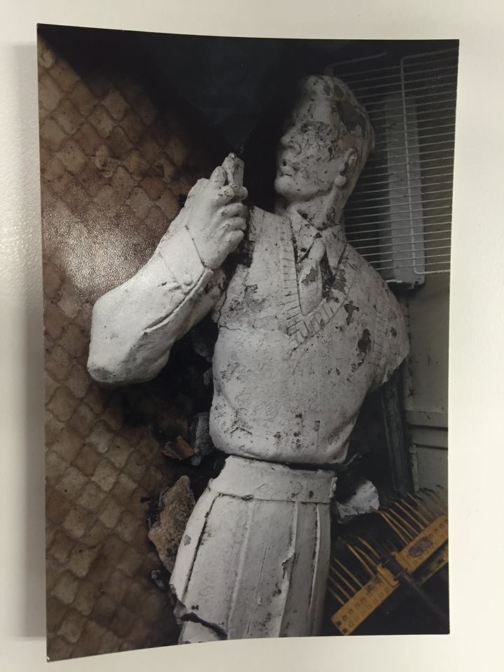 In 2018, the same community group was granted a small budget by the Cumorah/Fletcher and Rena Jones Foundation to work on a project to reproduce one of the sculptures that used to hang in the gardens (that was also state heritage listed in 2006). The Plus 8 Man was in such poor condition that he could not be repaired. When several of the men were discovered on the facade of a former Fletcher Jones store at Queen and Flinders’ St Melbourne, we contacted Caydon Group who were about to start the development of the building into a 24 storey vibe hotel. We made a request to see if we could scan one of the men, as they appeared to have come from the same mould as the one that used to hang in the FJ gardens. (In earlier times, there were a number of these men on the facade of the factory and in the gardens). Joe Farr of Freedspace/Thinglab did the scan with enthusiastic support from the developers - just as the development of the 24 storey hotel on the site in Melbourne began.