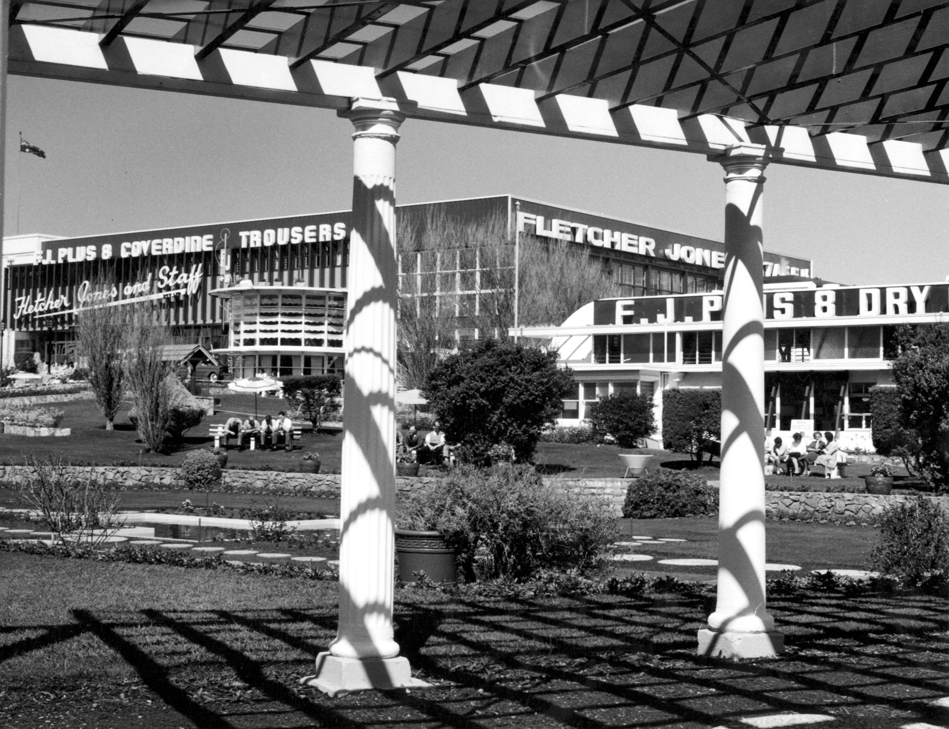 After the opening of the Pleasant Hill Warrnambool factory in 1948, work began the following year on creating a garden.    The site was considered an eyesore but a friend of Fletcher Jones, Ted Baker, christened the site Pleasant Hill and the name stuck.  Leslie (Darby) Boucher, Fletcher Jones brother-in-law, created the gardens with artistic help from local architect Tag Walter.