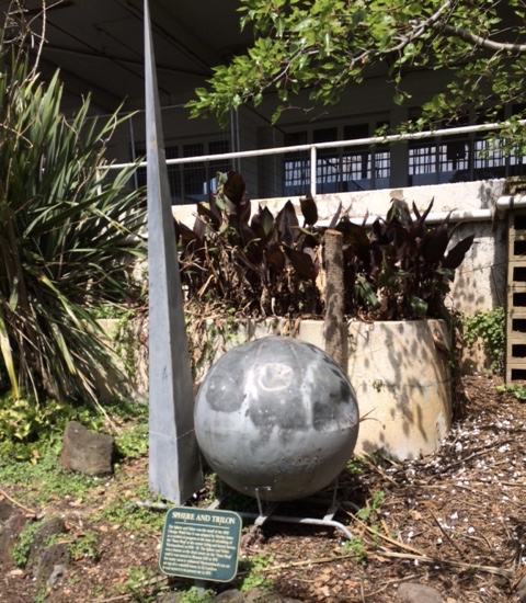 The small cone and sphere metal sculpture in the Fletcher Jones gardens now sitting rather forlornly in a garden bed once sat atop the Man's Shop in Liebig St. before moving to the top of the Pleasant Hill factory building and later to a small tower in the gardens. Towering above the small sculpture is another metal cone and sphere formation - Warrnambool's famous Silver Ball. So why was this cone and sphere formation so important to Fletcher?