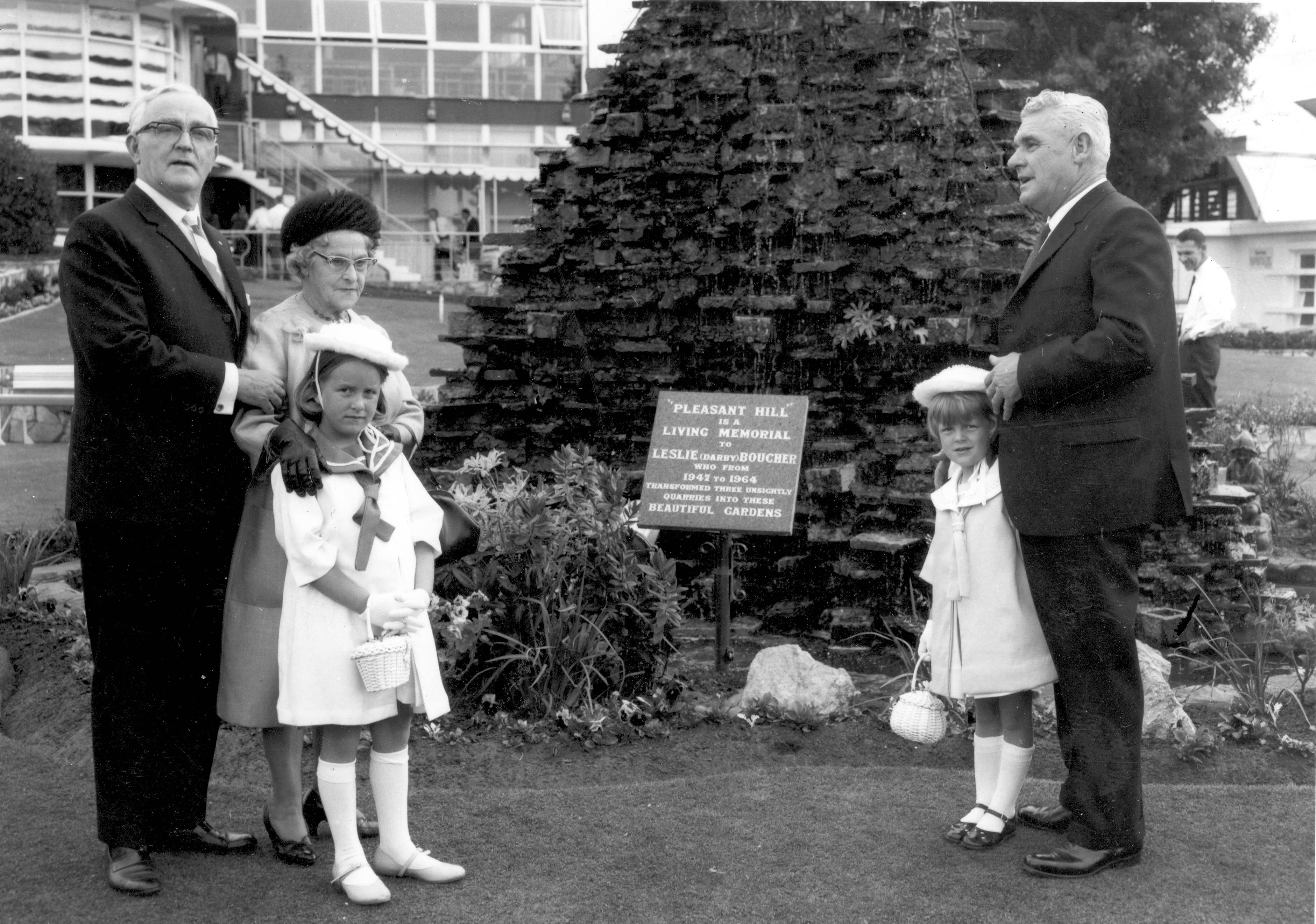 There is a granite plaque in the gardens that reads ‘Pleasant Hill is a living memorial to Leslie (Darby) Boucher, who from 1949 to 1964 transformed three unsightly quarries into these beautiful gardens.’
