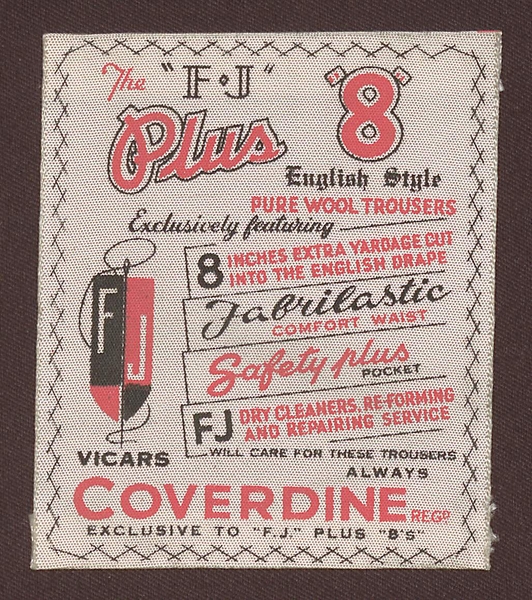 The trousers were fully draped, resembling a divided skirt hanging from the waistband. Because eight inches of extra cloth were cut into the drape, they were known as ‘plus-eights’.