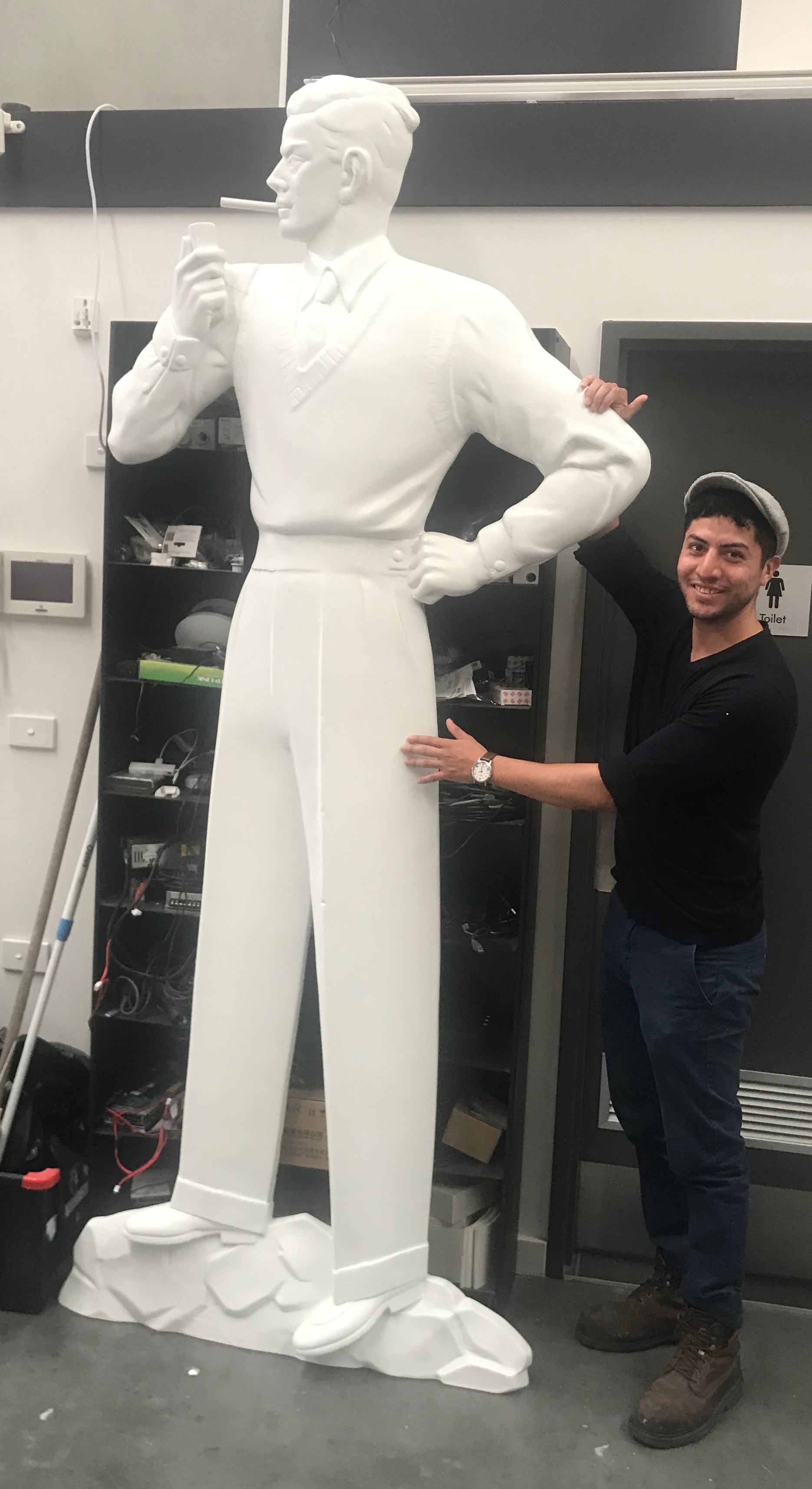 From there, we worked with Robert Grosso of Seen Technology to reproduce a Plus 8 Man from the file produced by the scan. Seen Technology have one of the largest 3D printers in Australia and produced the man in two parts. In February of 2020, we received an email from David Campbell-Burns Contract Administrator for HUTCHINSON BUILDERS who said "