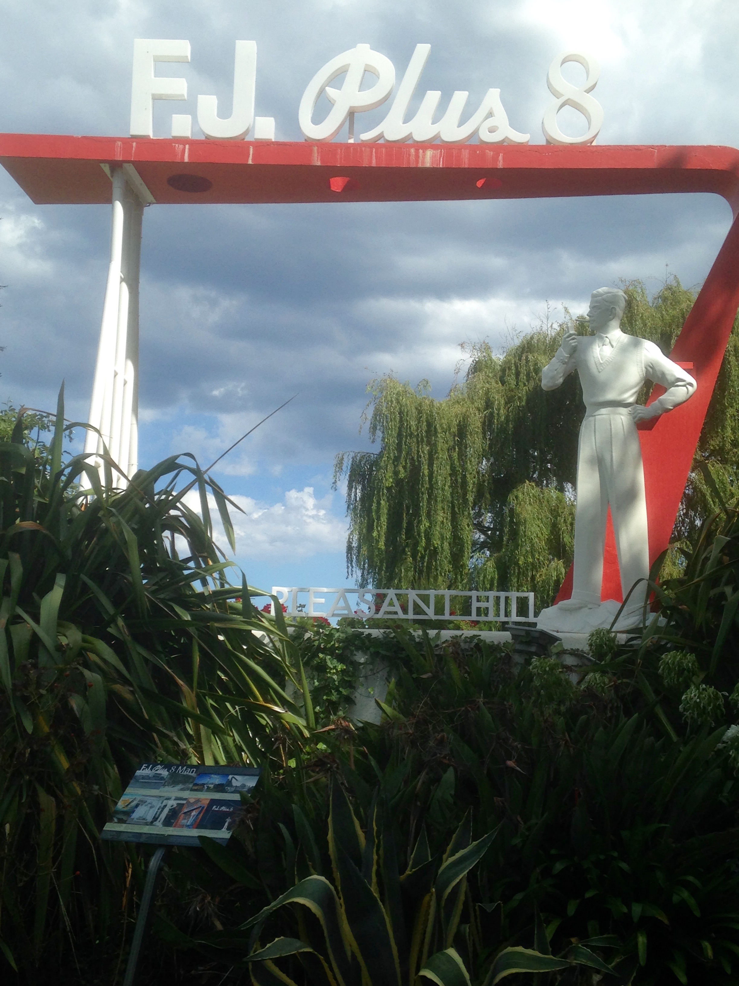 We also wanted to reproduce the letters that used to be on top of the sculpture and Tim Umney, our website designer, created a file from old photographs that Seen Technology then used to manufacture the letters for us. The Pleasant Hill sign as in the original was subsequently manufactured by Seen Technology and added in March 2020 to complete the scultpure. We wanted the man to light up and be a special element in the FJ gardens and we are thrilled with the result. He is spectacular at night, powered by solar and he is the bookend to the restored silver ball which also lights up at night on the Warrnambool skyline.