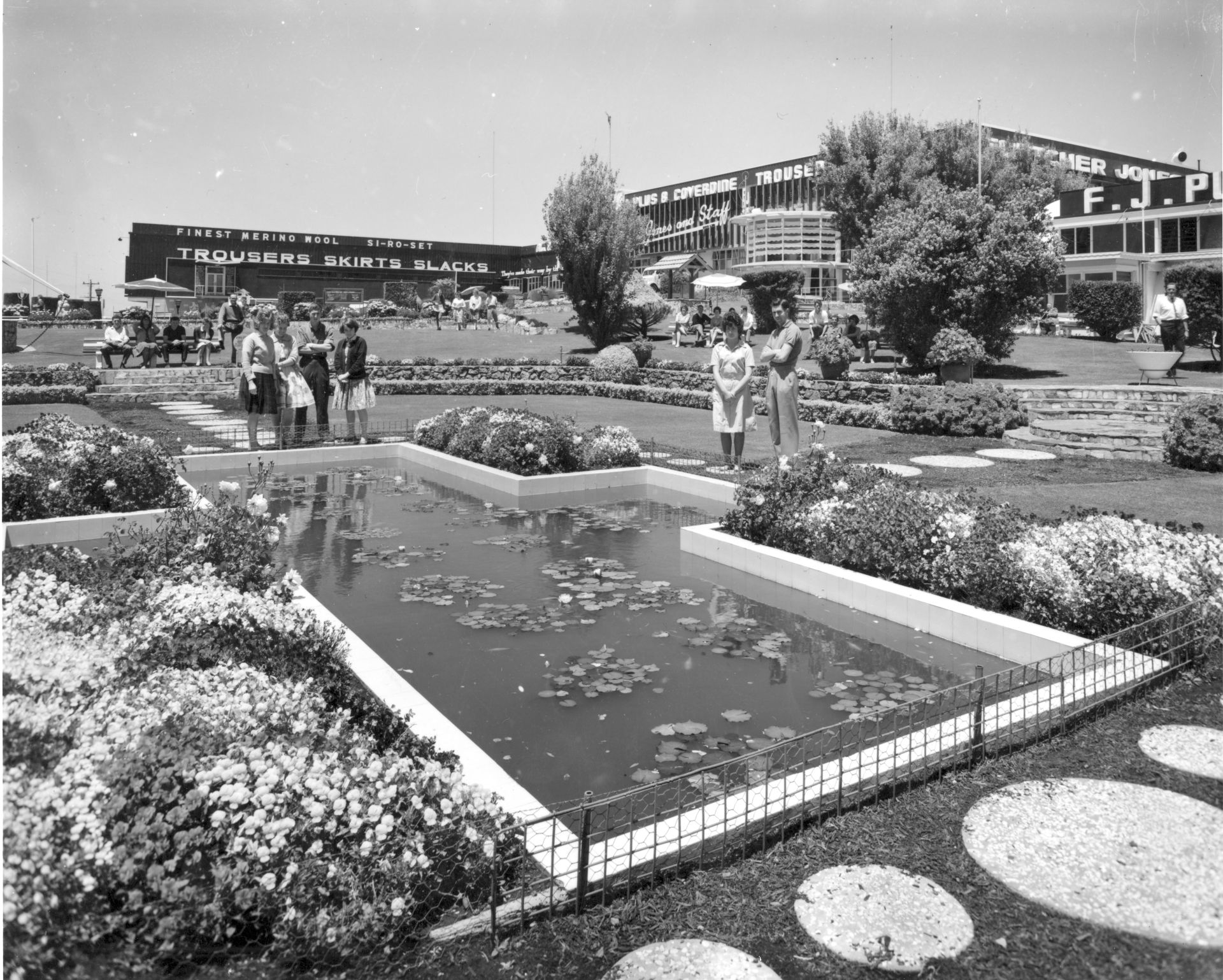 After the opening of the Pleasant Hill Warrnambool factory in 1948, work began the following year on creating a garden.    The site was considered an eyesore but a friend of Fletcher Jones, Ted Baker, christened the site Pleasant Hill and the name stuck.  Leslie (Darby) Boucher, Fletcher Jones brother-in-law, created the gardens with artistic help from local architect Tag Walter.